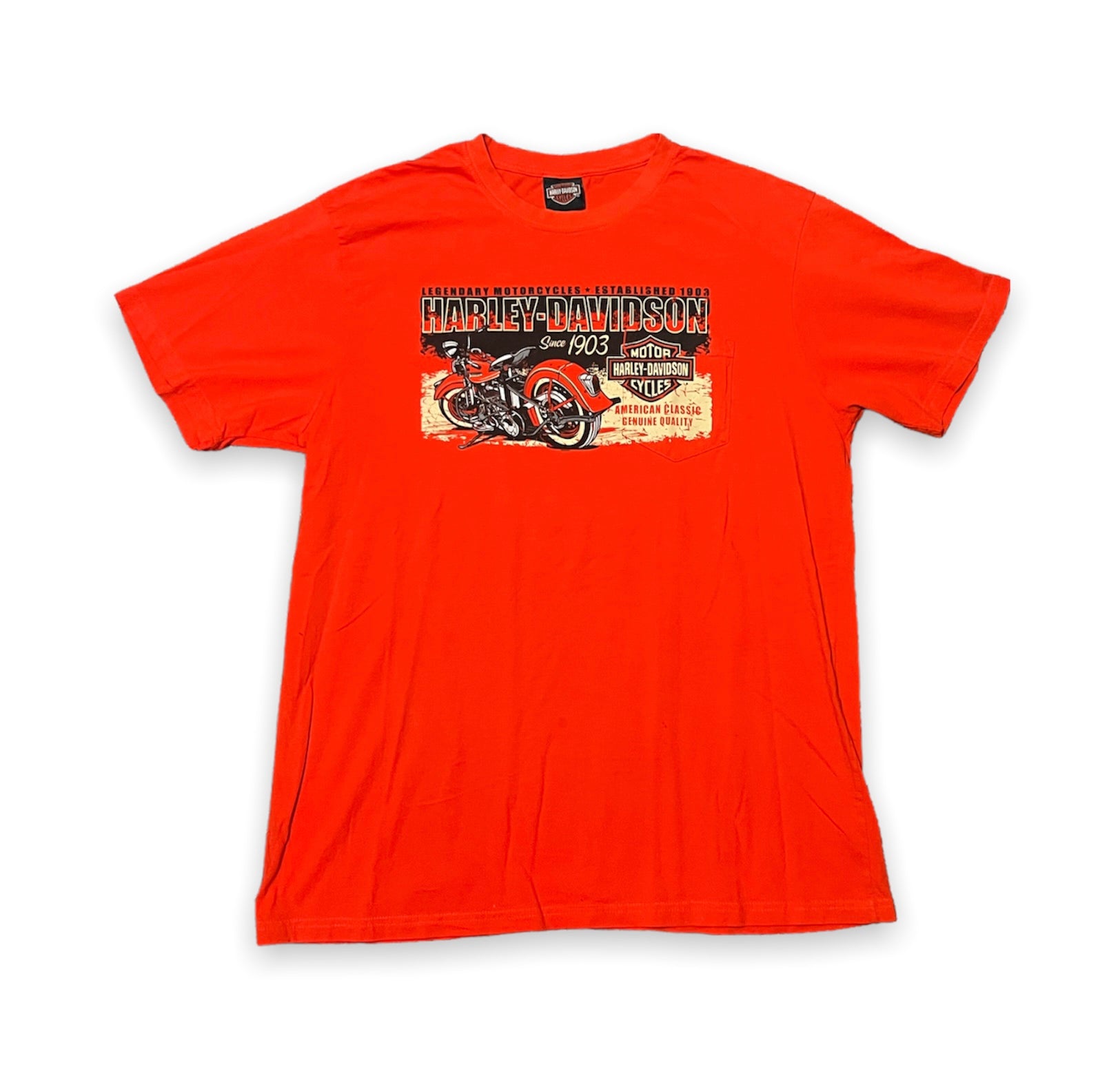 Harley Davidson McHenry Illinois Pocket Orange Tee